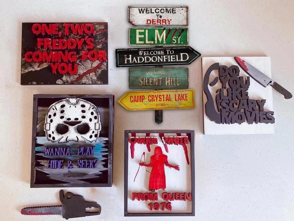 Add a touch of spooky charm to your home or gift it to a fellow horror fan with this unique decor piece celebrating iconic destinations in horror movies. Measuring 16" x 12", it features distressing details and comes with two screw holes or alternative hanging options with rope. Includes a sheet of versatile vinyl horror-themed stickers perfect for laptops, water bottles, skateboards, and more. Whether for a living room, home theater, or as a gift, this piece is sure to catch the eye and spark conversations. Your satisfaction is 100% guaranteed.
