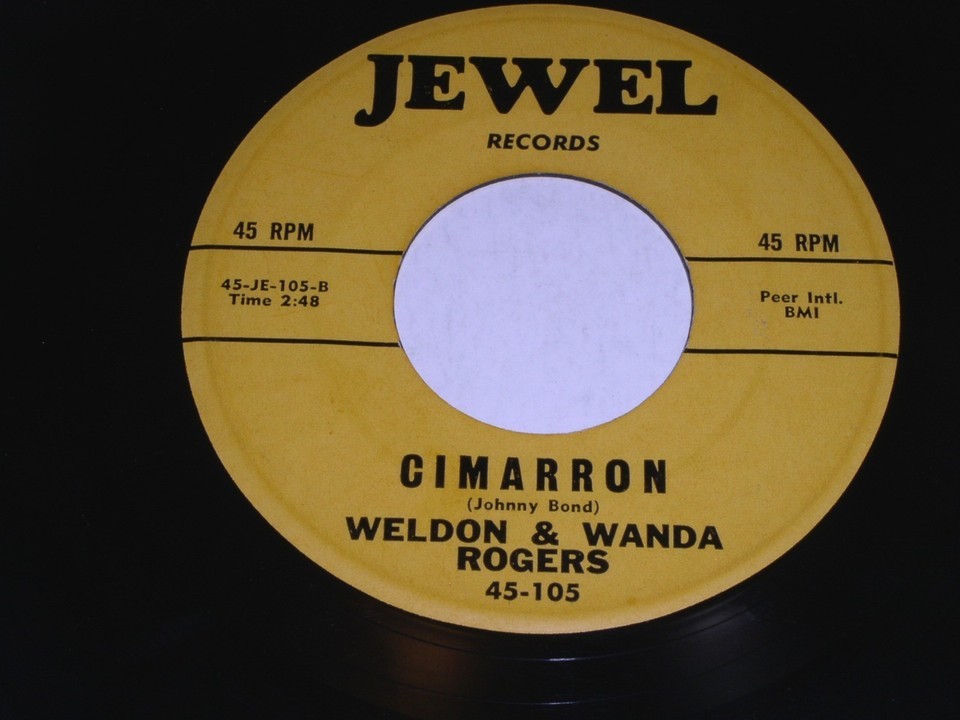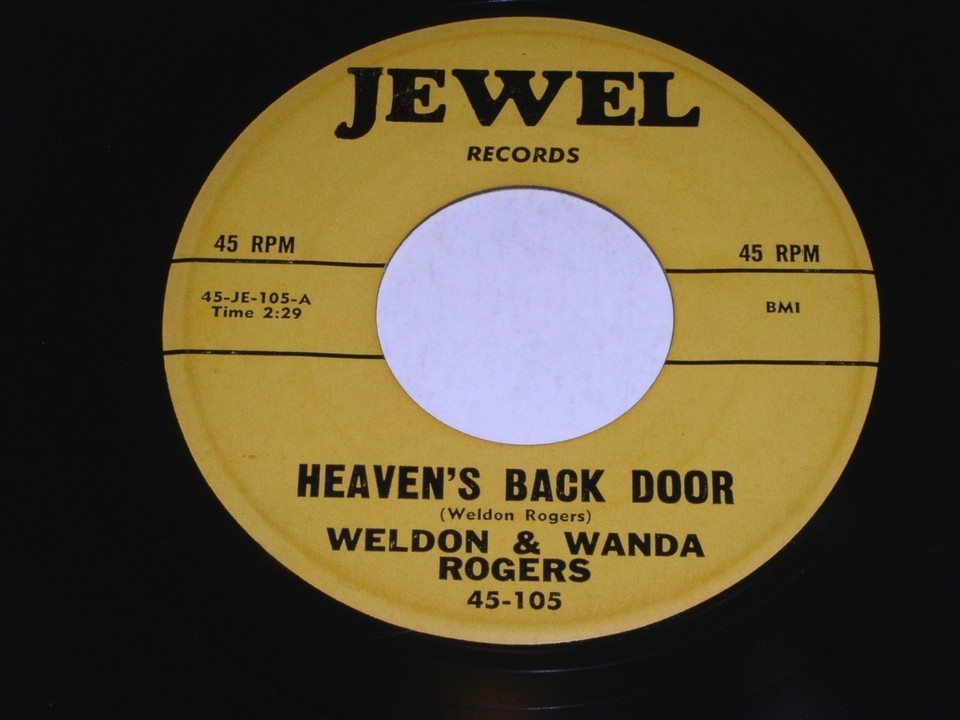 This is a vintage 45 rpm phonograph record by Weldon Wanda Rogers entitled, "Heaven's Back Door". Flipside: "Cimarron". Record label Jewel 45-JE-105.