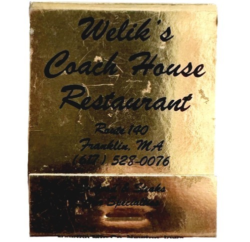 - Welik's Coach House Restaurant Closed Vintage Matchbook Full Unused E34m2