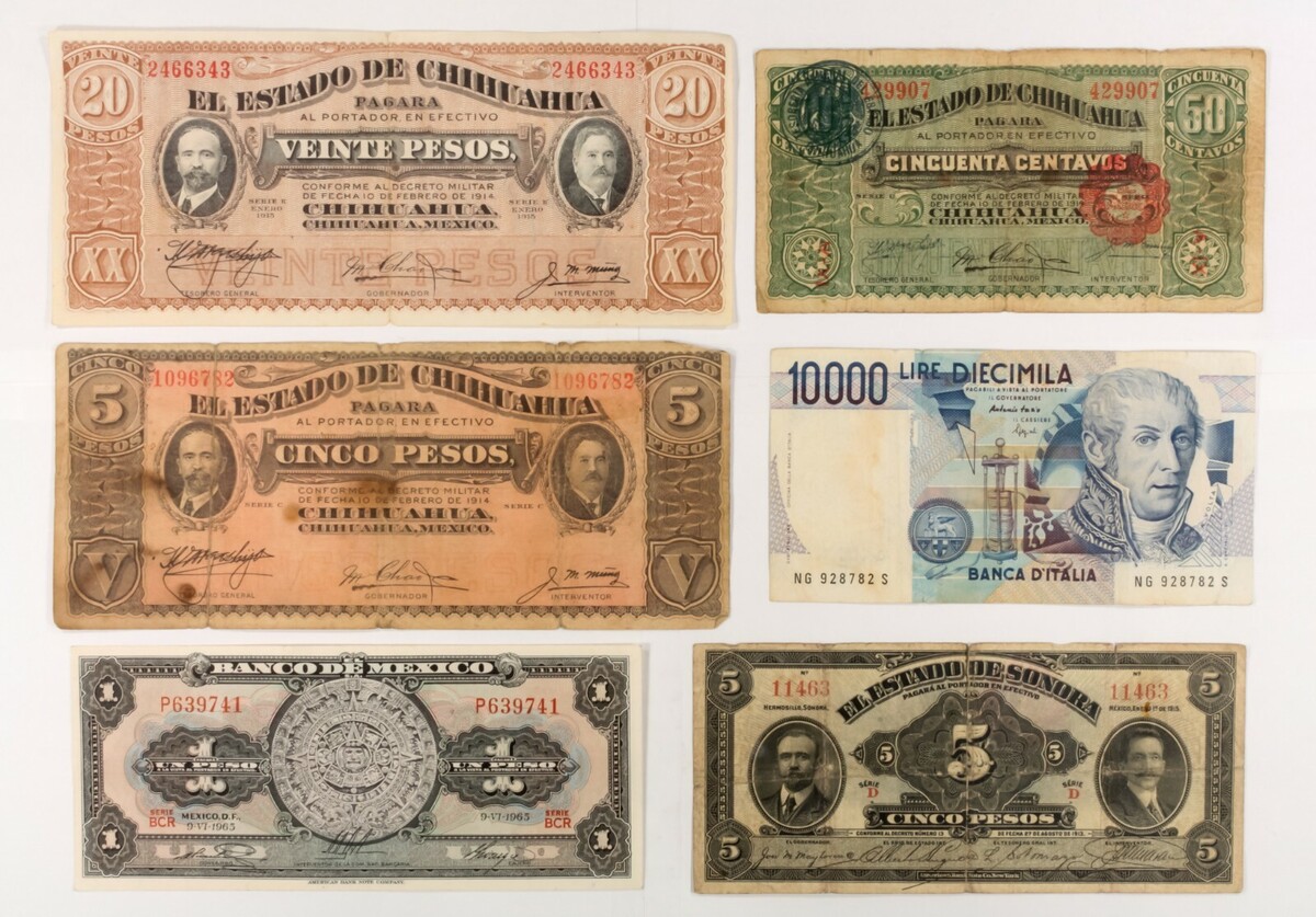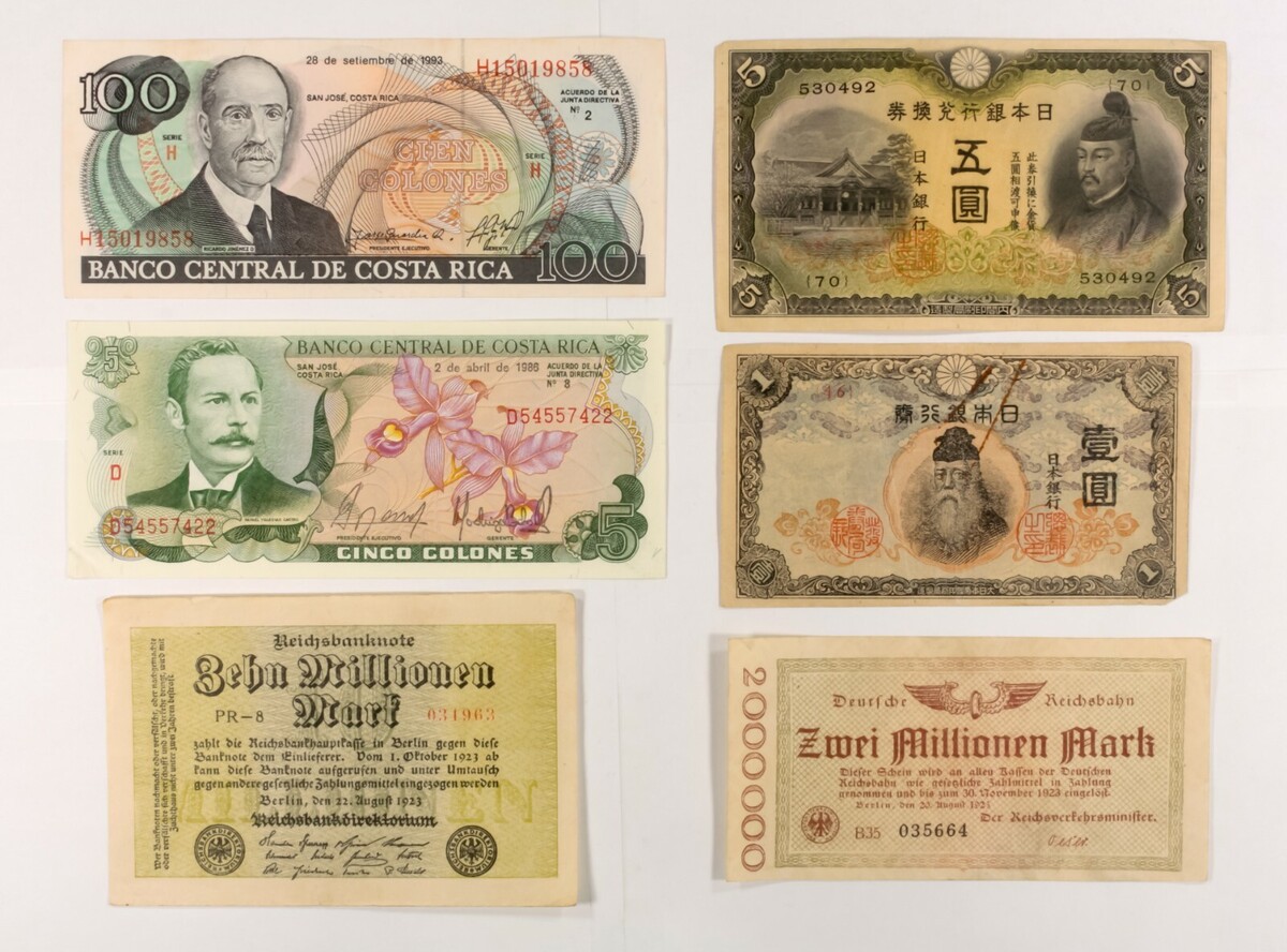 Welt Banknotes. Costa Rica, Deutschland, Italien, Frankreich, Japan & Mexiko 14