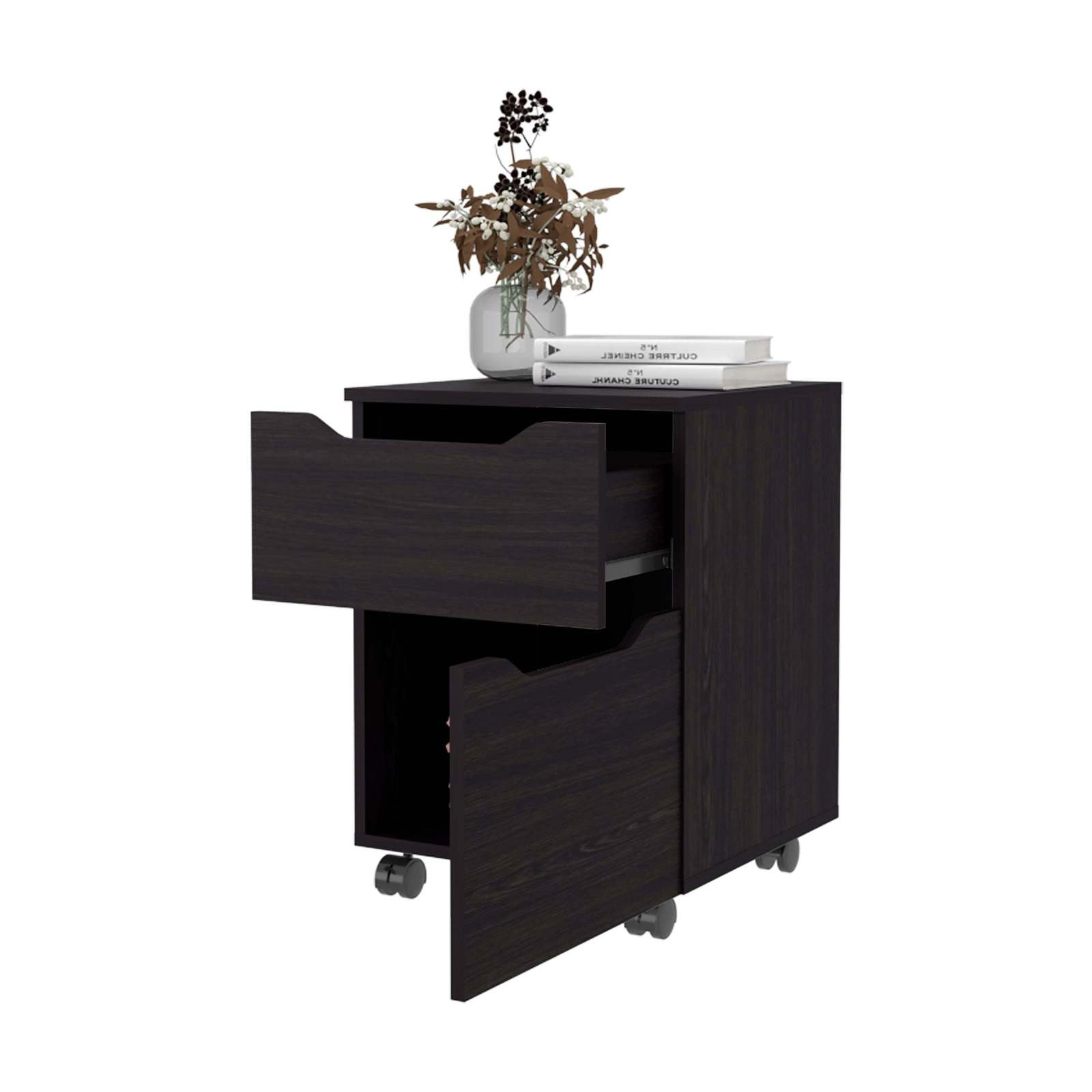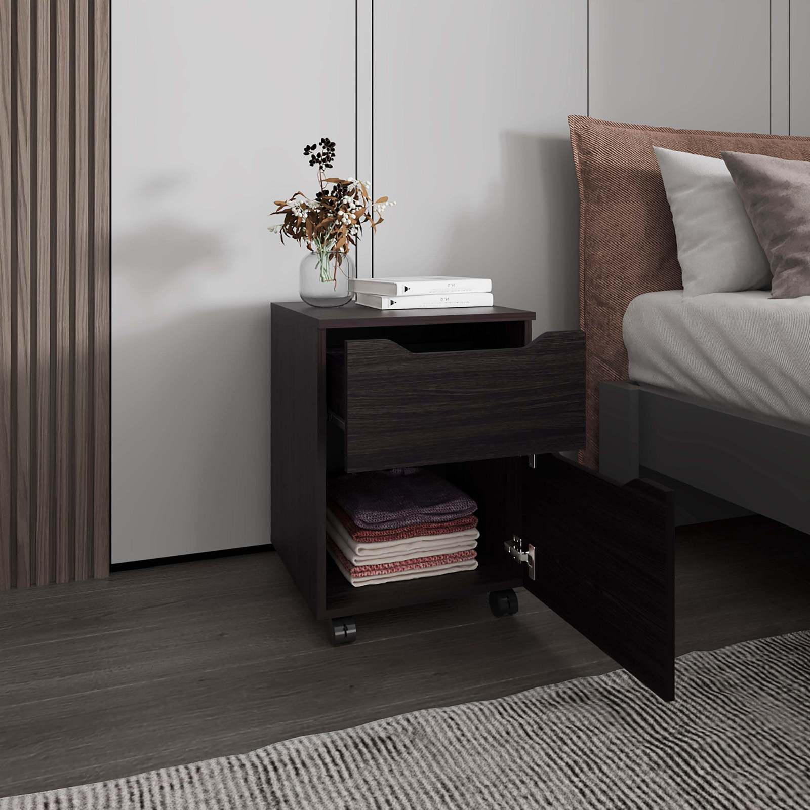 This piece features a 1-door design for compact, space-efficient storage, perfect for smaller spaces or a minimalist aesthetic, with a single drawer for convenient storage of small essentials. Equipped with a caster base for smooth mobility, its rich wengue finish adds a deep, contemporary touch that effortlessly blends with modern and transitional decor styles.