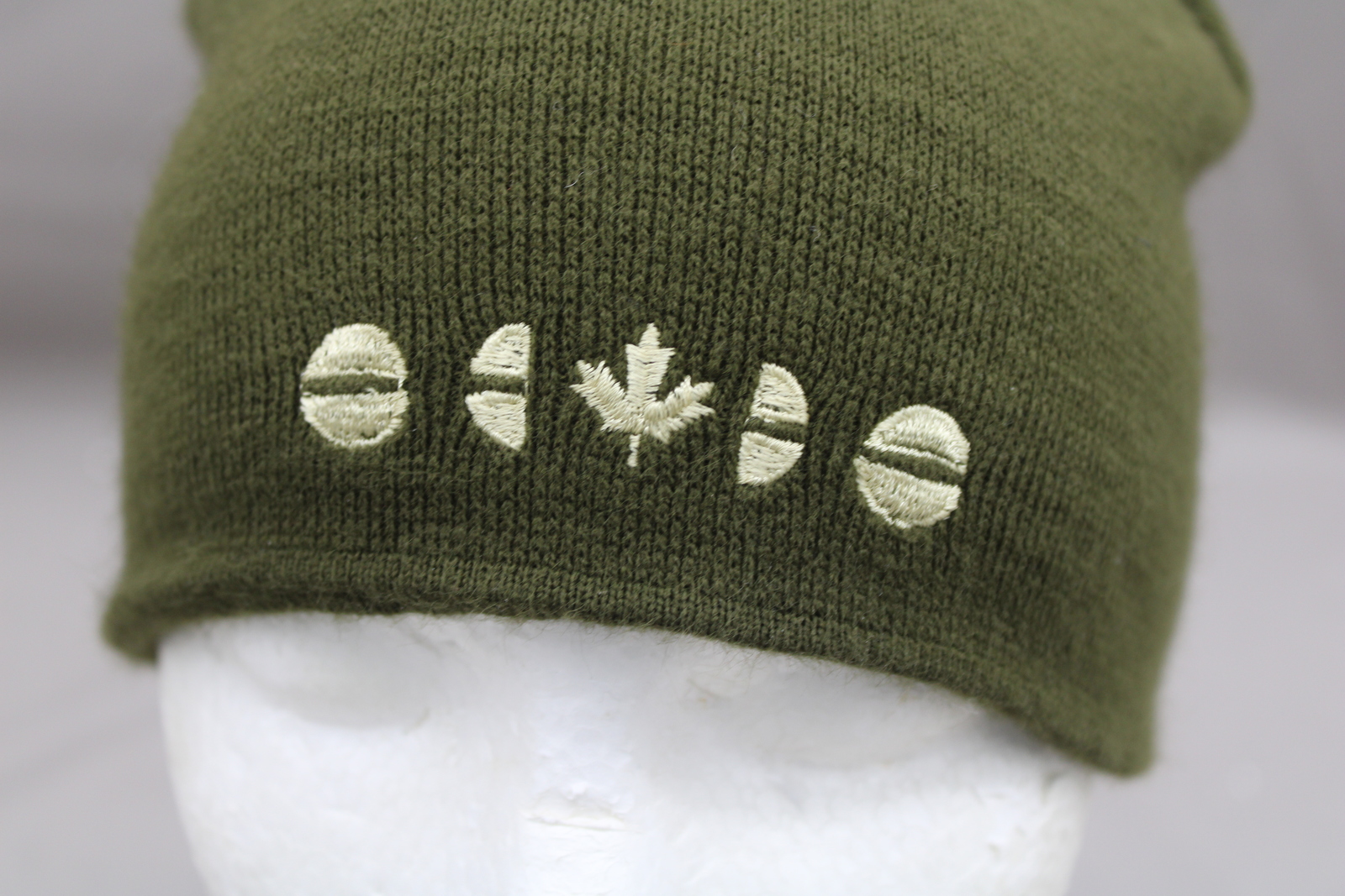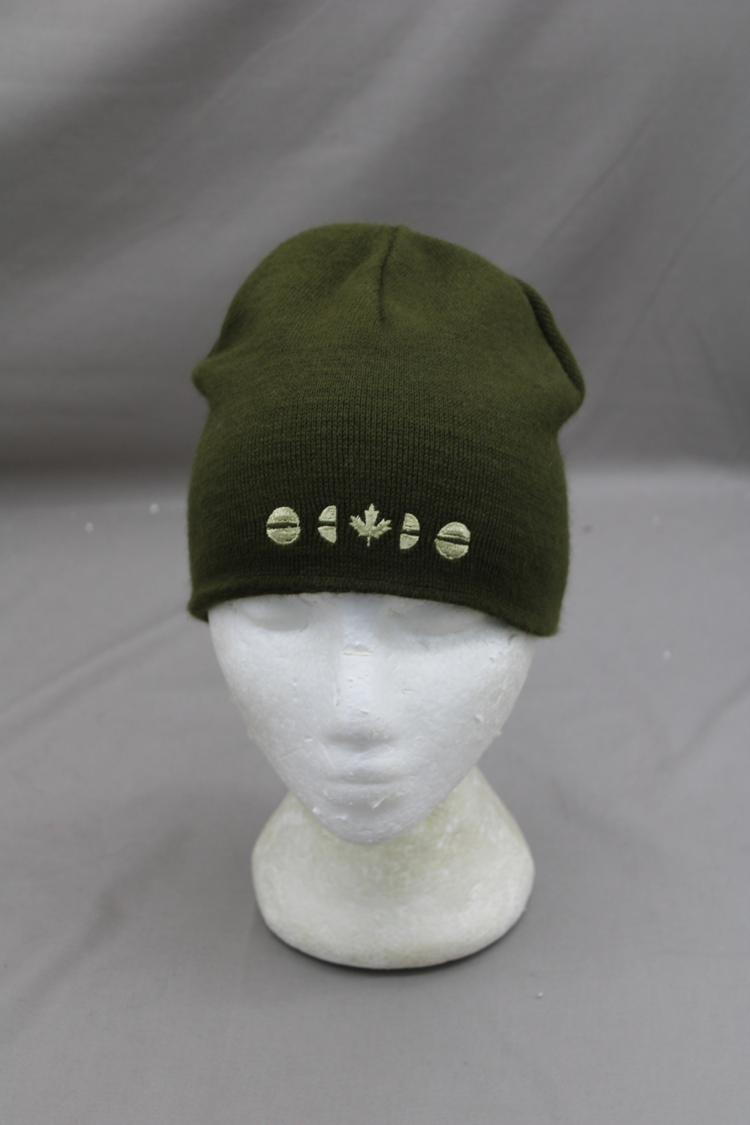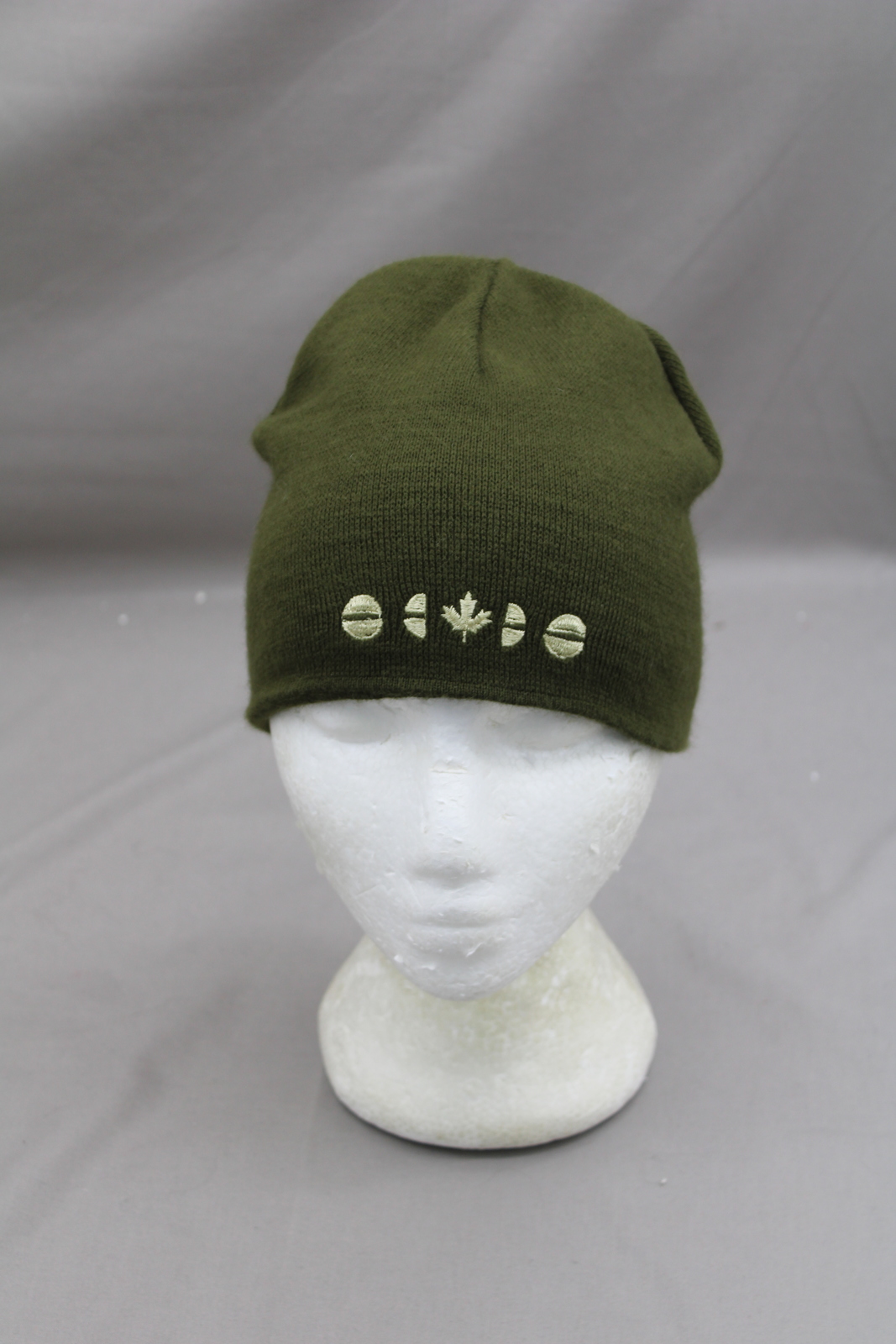 This toque is an adult one size fits all stretch fit. It measures 8" (length) x 7" (height) inches.