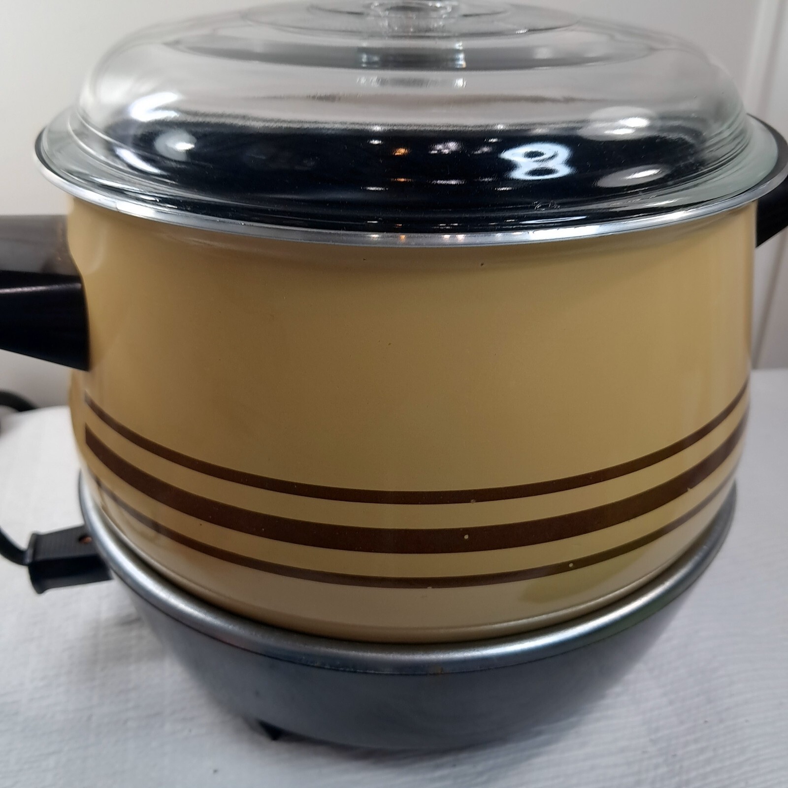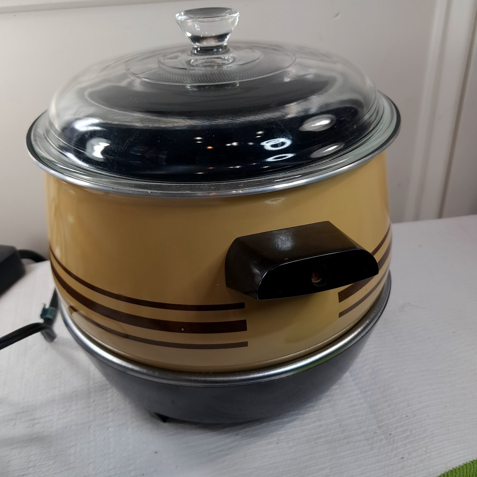 - Westbend Lazy Day Slow Cooker #5225 crock pot tan brown stripes Made In USA
