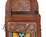 Challenger versatile bag hand crafted from genuine full-grain distressed brown leather to endure everyday use. Features a handwoven multicolor front inlay, and floral tooled leather accents. This multipurpose bag is ideal for work, traveling, weekend trips, hiking, or daypacking. Conveniently sized roomy bag fits most airline overhead bins makes a great carry-on option. The various multiple sized pockets offer great organized storage. Washable lining allows for easy cleaning in case of accidental spills. Inside the main compartments there is two open pockets, and one padded pocket to safely store electronics. On the exterior there are two front, and two side zippered pockets to store easily accessible items such as phone, wallet, keys, headphones, passport, travel documents, etc. Soft padded adjustable shoulder straps for comfort. Bag measures 13" L x 5" W x 18" H providing plenty of room for all of your essentials.