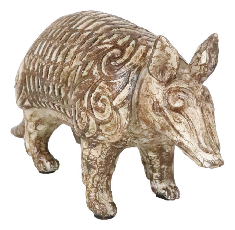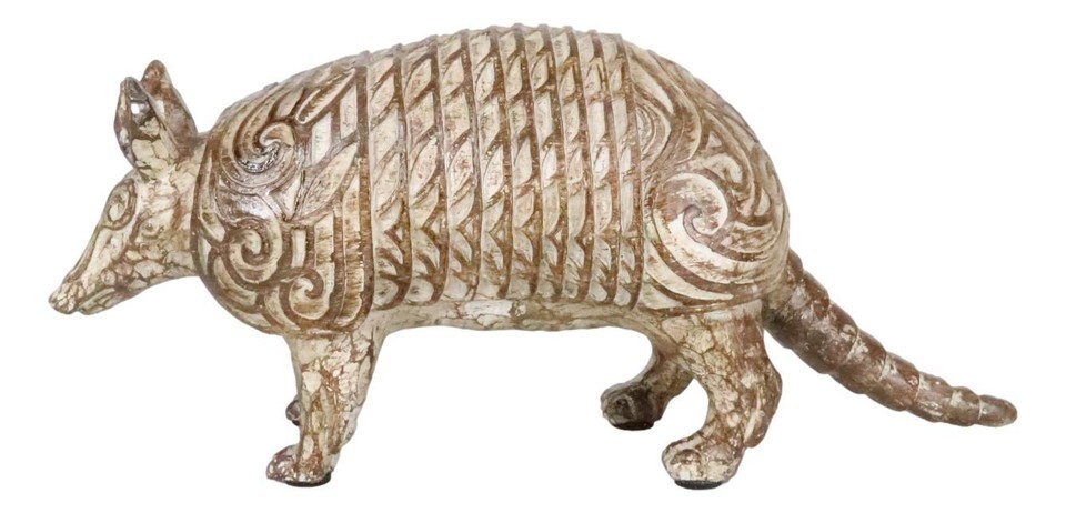 - Western Rustic Texas Wild Mammal Armadillo In Tooled Faux Wood Finish Figurine