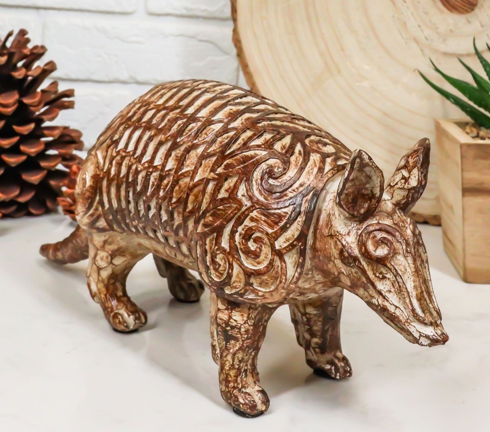 Western Rustic Texas Wild Mammal Armadillo In Tooled Faux Wood Finish Figurine