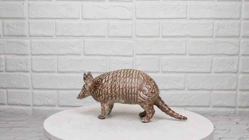 ? This Armadillo Sculpture is made of polyresin, hand painted and polished individually to resemble wooden handicraft.