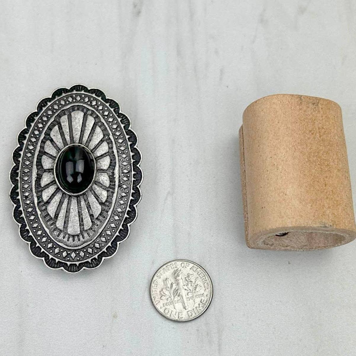 - Western Silver Tone Concho with Black Center Stone Wild Rag Scarf Slide