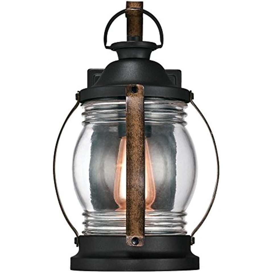 Bring a touch of Rustic charm to your home's exterior with the Westinghouse Canyon one-light wall fixture. This timeless fixture adds traditional appeal with a two-tone textured black and Barnwood finish and clear hand blown glass retro-style shade. Light up a front or back entryway with this Arts and Crafts fixture. Install it on a porch or balcony for welcoming illumination. This wall lantern's timeless design and durable craftsmanship ensure lasting style and beauty. It is backed by a five-year limited warranty against defects in materials and workmanship. Westinghouse is a trusted, global brand. Westinghouse knows lighting and offers products with exceptional quality, reliability and functionality. Product reference number 63351.Back Plate Height (inches): 7.40, Back Plate Width (inches): 4.56, Bulb Base: E26 (Medium)