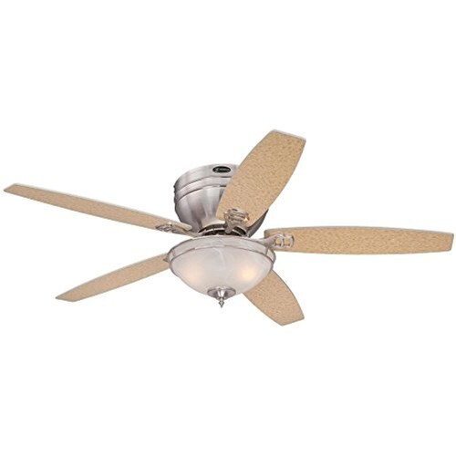 Indoor 52-inch brushed nickel ceiling fan, ideal for rooms over 225 square feet (15 feet by 15 feet)