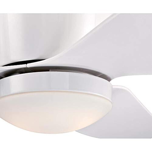 White fan with white finish blades, integrated 16 watt dimmable LED light kit with opal frosted glass shade