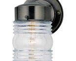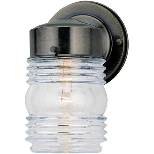 Single Lamp Jelly Jar Wall Fixture Antique Brass Finish Outdoor Clear Fluted Glass Shade With 3-1/4" Fitter Width 4-1/2" Height 8" Extends 5" Uses 1 Bulb 75W Maximum