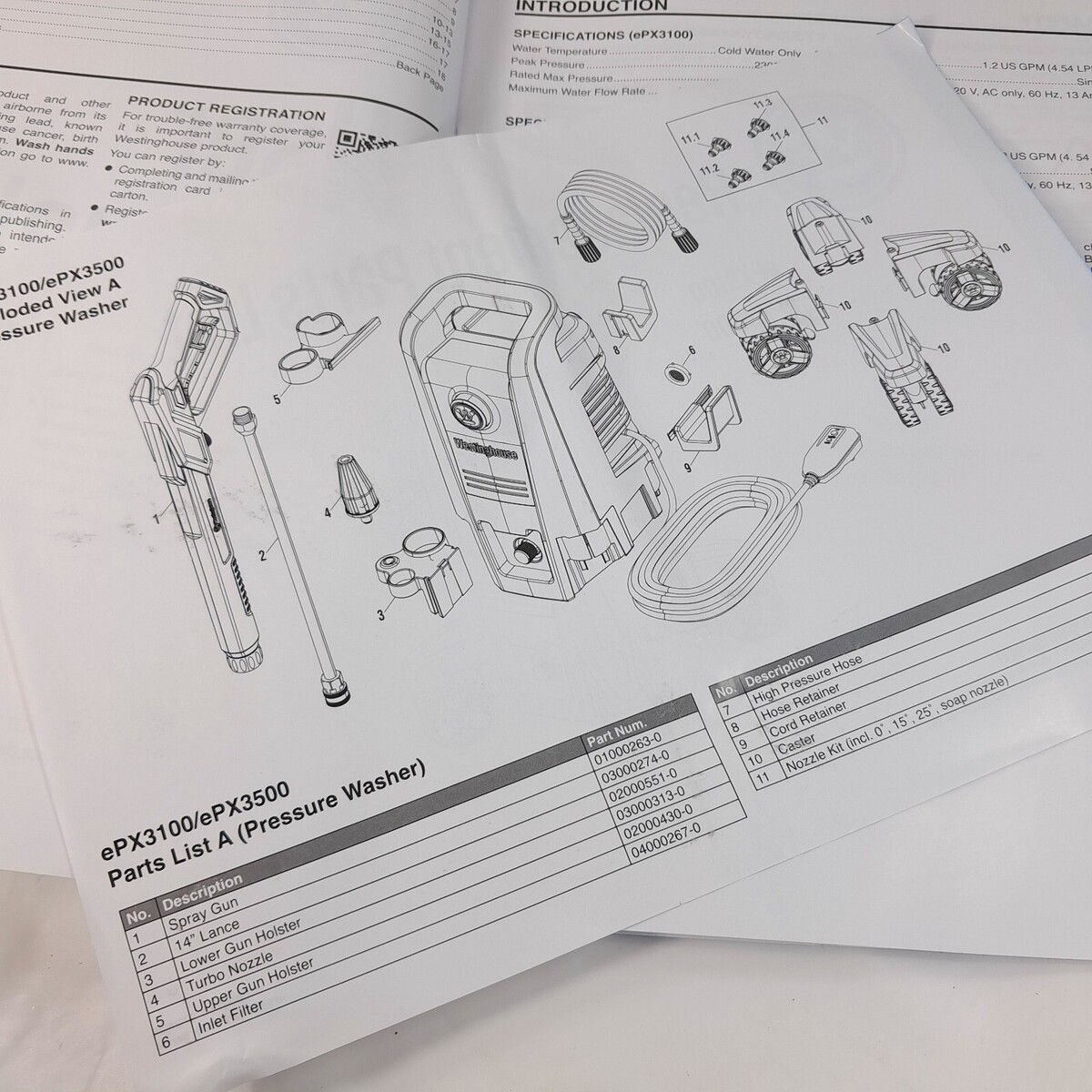 - Westinghouse ePX3100 ePX3500 Electric Pressure Washer User Manual instructions
