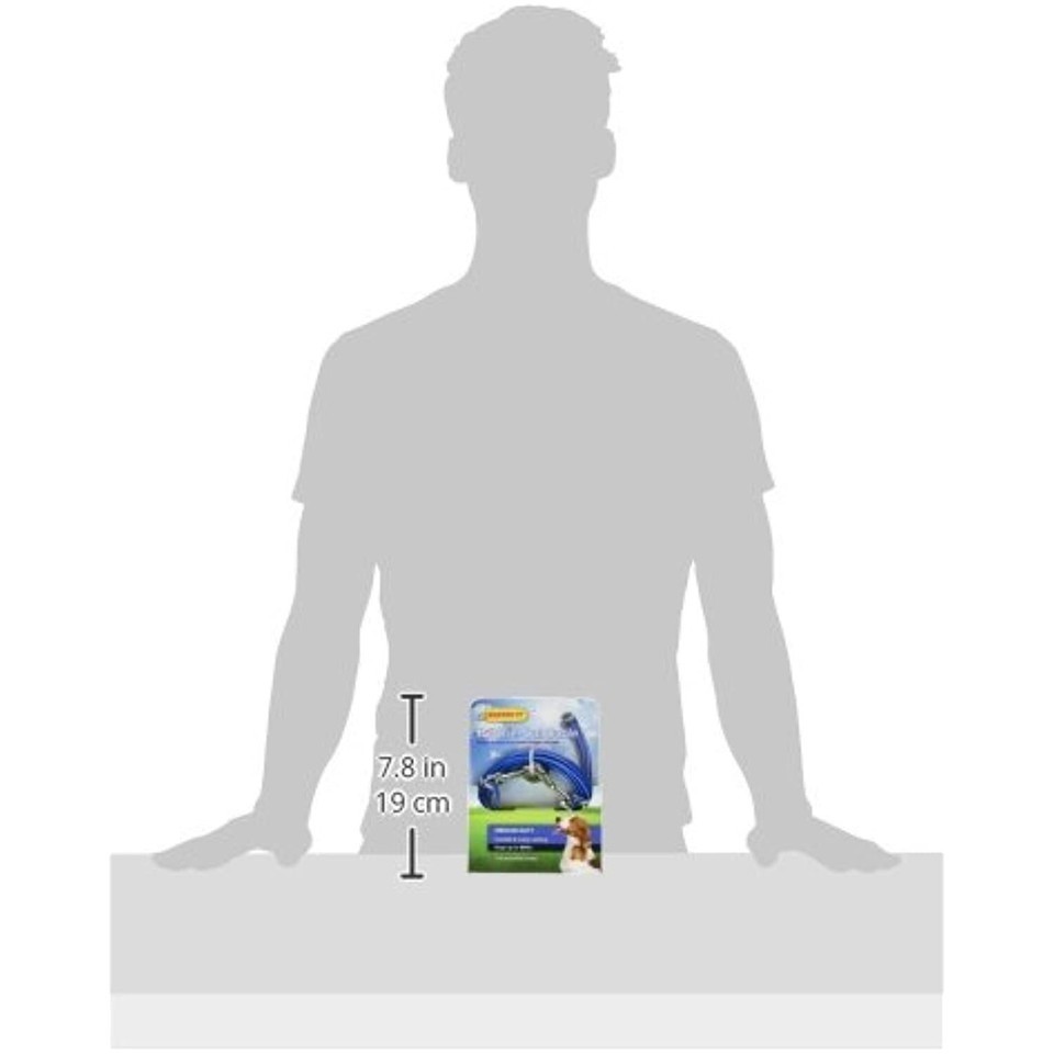 Pet Expert Lightweight Dog Tie Out is a galvanized steel aircraft cable that is stronger than nylon tie outs providing a strong, secure hold. Features crack resistant UV protected vinyl coating delivering long lasting use and forged iron swivel snaps at both ends for optimal durability. Product is available in blue and measures 15?.