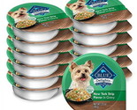 Contains twelve (12) 3.5-oz BLUE Wet Dog Food Cups, New York Strip Flavor in Hearty Gravy