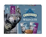 REAL MEAT FIRST: This dog food variety pack is made with real; high-quality chicken or beef as the first ingredient | HIGH-PROTEIN DOG FOOD: These grain-free dog food toppers are packed with protein to satisfy your dog's wild side | FEED TWO WAYS: BLUE Wilderness Toppers make a delicious meal topper or tasty treat between meals | HEALTHY; WHOLESOME INGREDIENTS: This wet dog food is made with no chicken or poultry by-product meals; and no corn; wheat; or soy | Contains: Twelve (12) 3-oz pouches of BLUE Wilderness Trail Toppers Wild Cuts Wet Dog Food Variety Pack, Chicken Bites Beef Bites | ENHANCED IMAGERY: We have enhanced our digital product packaging to highlight our products? ingredients and essential benefits; while the physical packaging will differ slightly, all information is accurate