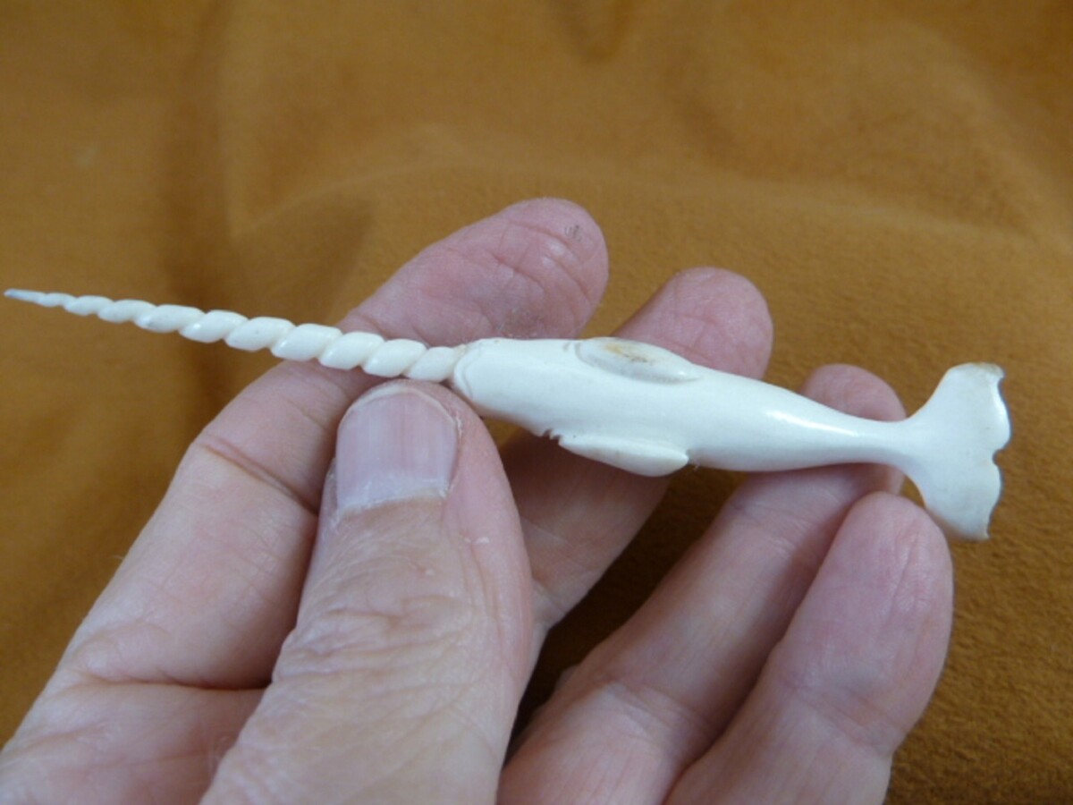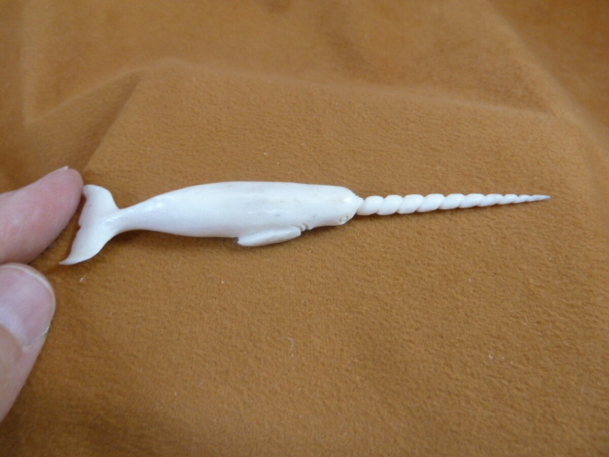 - Whale-w128 little white Narwhal Whale of shed ANTLER figurine Bali sea unicorn
