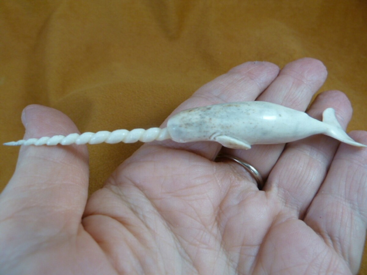 - Whale-w129 little white Narwhal Whale of shed ANTLER figurine Bali sea unicorn