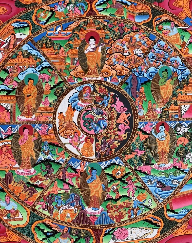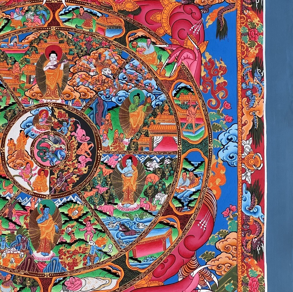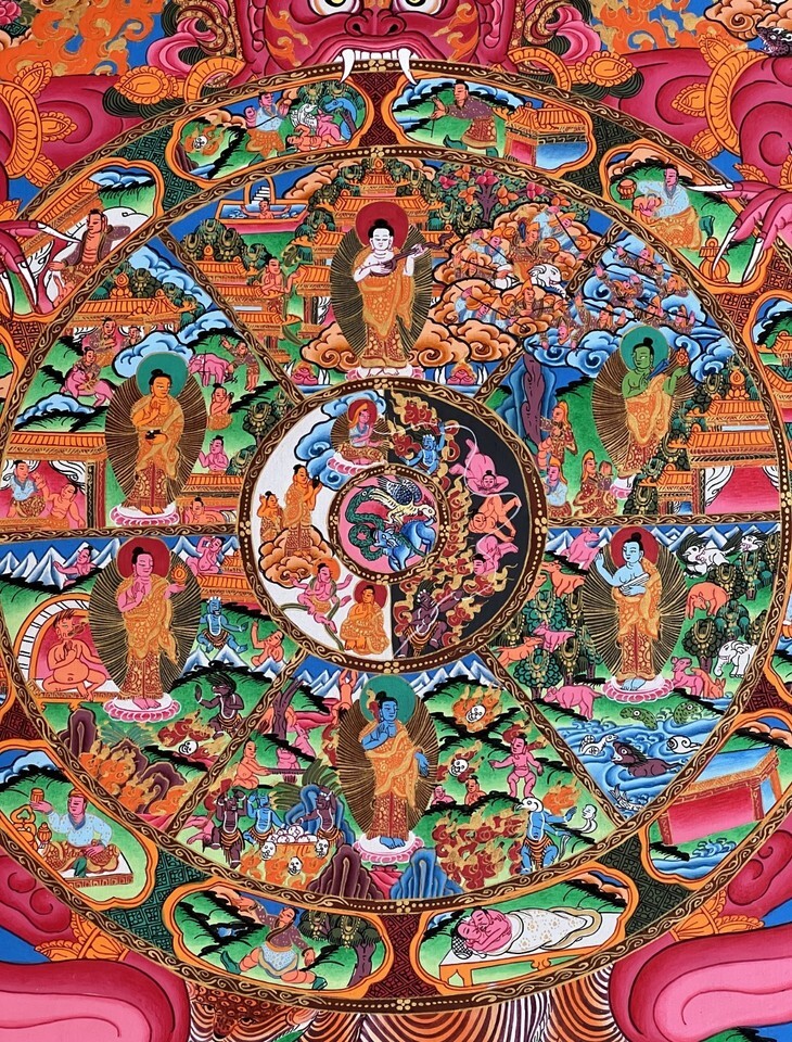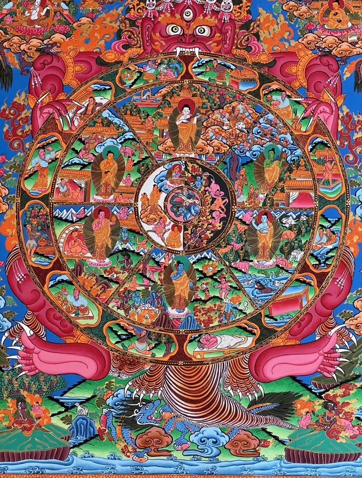 - WHEEL OF LIFE BHAVACHAKRA SAMSARA MANDALA ORIGINAL HAND-PAINTED TIBETAN THANGKA