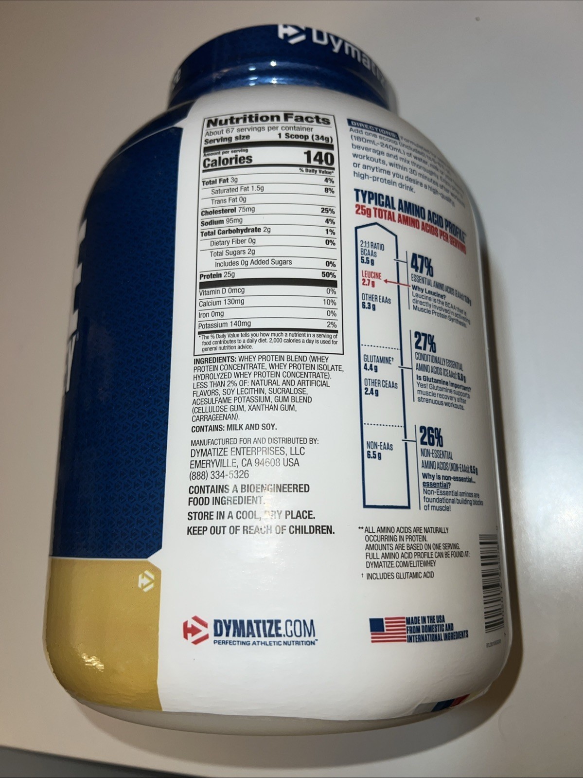 Dymatize Elite 100% Whey Protein Powder, Gourmet Vanilla, 25g of Protein, 67 Servings, 5.5g BCAAs, Less Than 140 Cal., Gluten Free, 2g Carb, 2g Sugar, 3g Fat