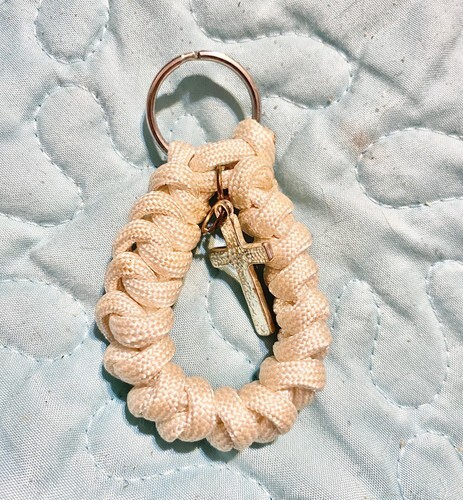 - While Paracord Rope Keychain Key ring With Cross Charm 3 Inch
