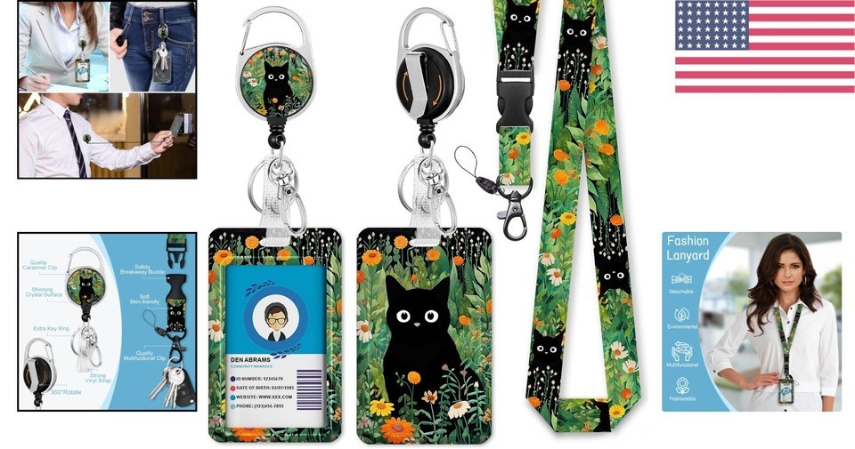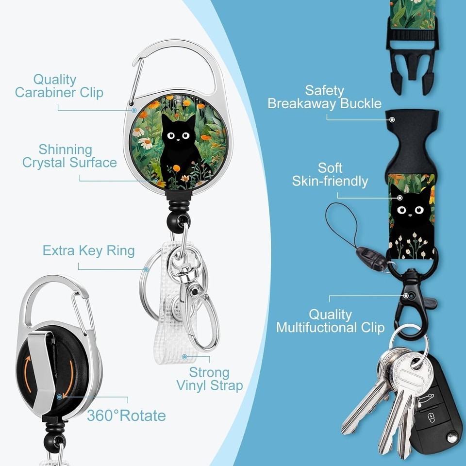 Unique Design: A charming black cat design that adds personality to your ID badge holder.
