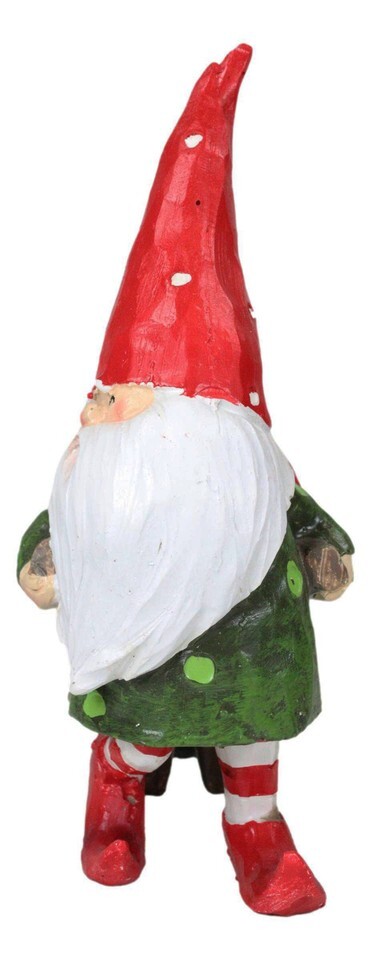 ? This Garden Gnome With Wheelbarrow Sculpture is made of polyresin, hand painted and polished individually.