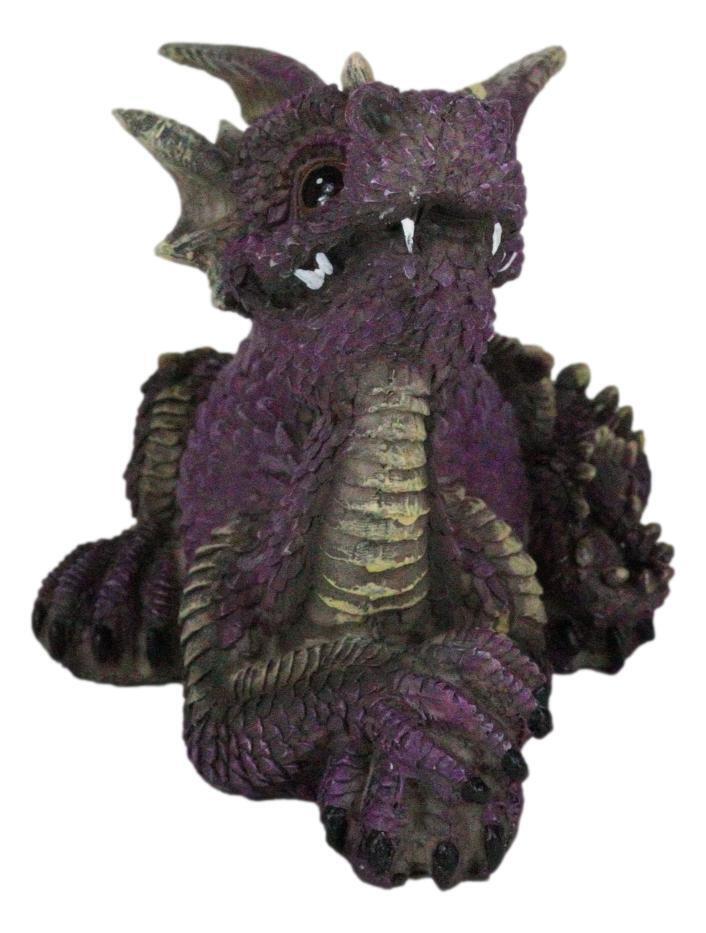 ? Introducing the captivating Purple Garden Dragon Figurine, meticulously crafted from premium designer composite resin. Each piece is carefully hand-painted and polished individually, showcasing an exceptional level of artistry and craftsmanship. Color tone may vary slightly, adding a unique touch to each piece. It is a mesmerizing centerpiece and an exquisite addition to your dragon-themed collection.