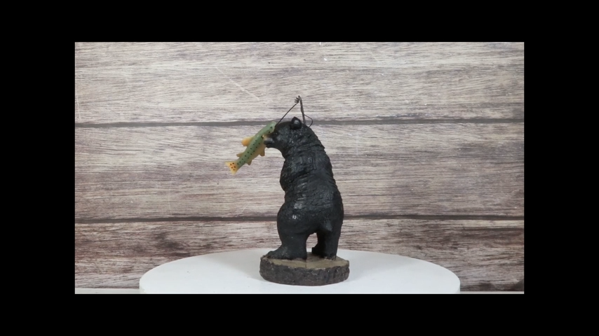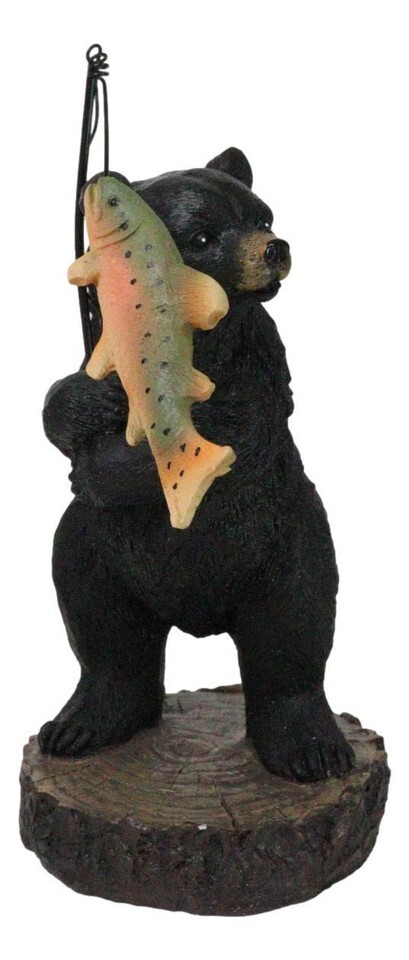 - Whimsical Rustic Forest Black Bear Catching Largemouth Bass Fish Figurine