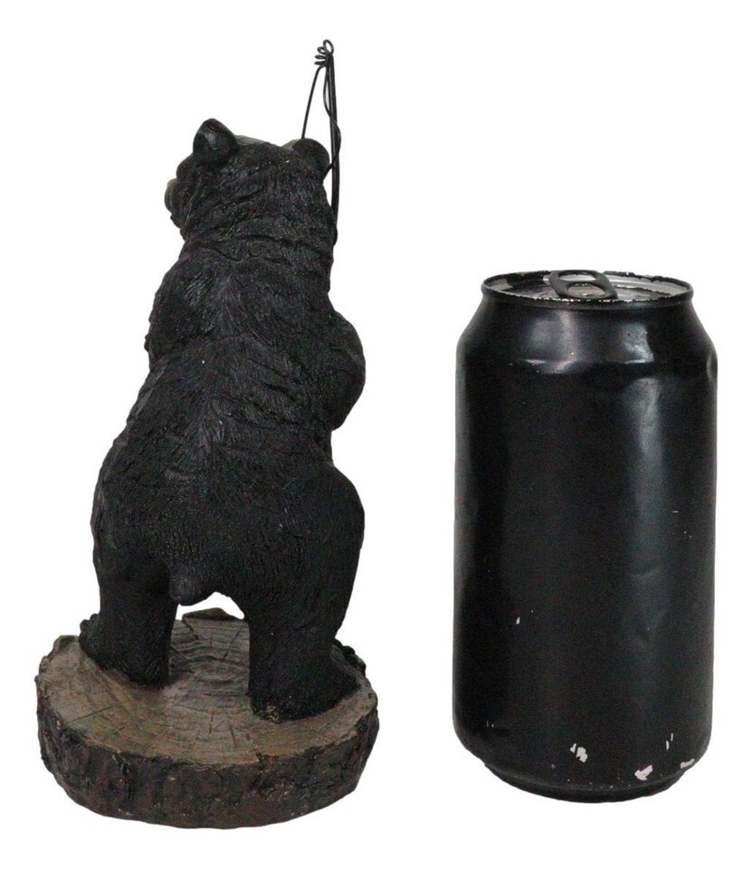 Whimsical Rustic Forest Black Bear Catching Largemouth Bass Fish Figurine