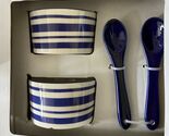 - White Ceramic Dessert Bowl Set Blue White Striped Chip Pattern