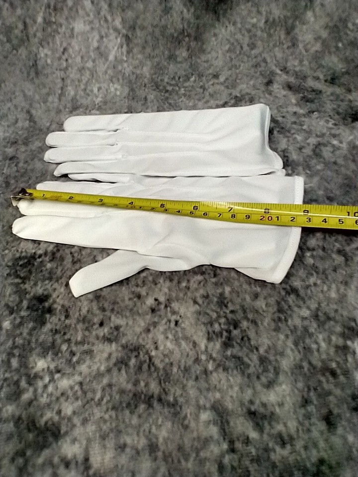 ADDITIONAL NOTES: IMPERFECT: Some gloves may have one or more issues. Some may have long threads that need trimmed, run in fabric, or colored threads woven in fabric that looks like a blemished spot. Fabric is thin. Snaps are a yellowish cream color and not white. Please see all Photos. SOLD AS IS.