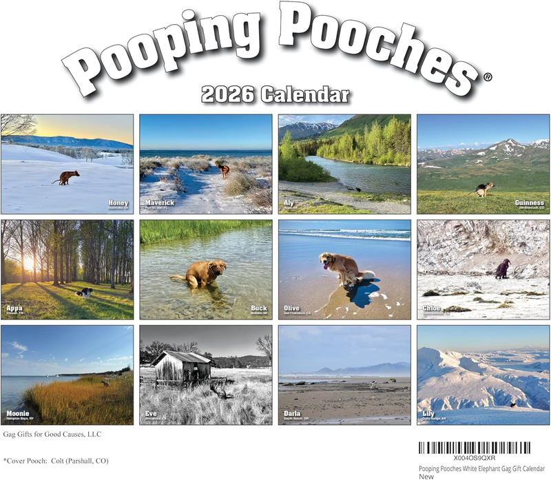 White Elephant Party coming up? Yankee Swap? Secret Santa? Do you know someone who loves dogs...too much? This 12 month calendar of pooping dogs will be the most memorable gift you give this year. Talk about a gift that keeps on giving; each month reveals yet another beautiful pooch answering nature's call. And who doesn't like a good cause? $1 FROM EACH CALENDAR is donated to the Maui Humane Society to support animals in need! The calendar is 17 x 11 inches open and 8.5 x 11 inches when closed. The Pooping Pooches dog calendar is the ultimate joke, prank or gag gift.