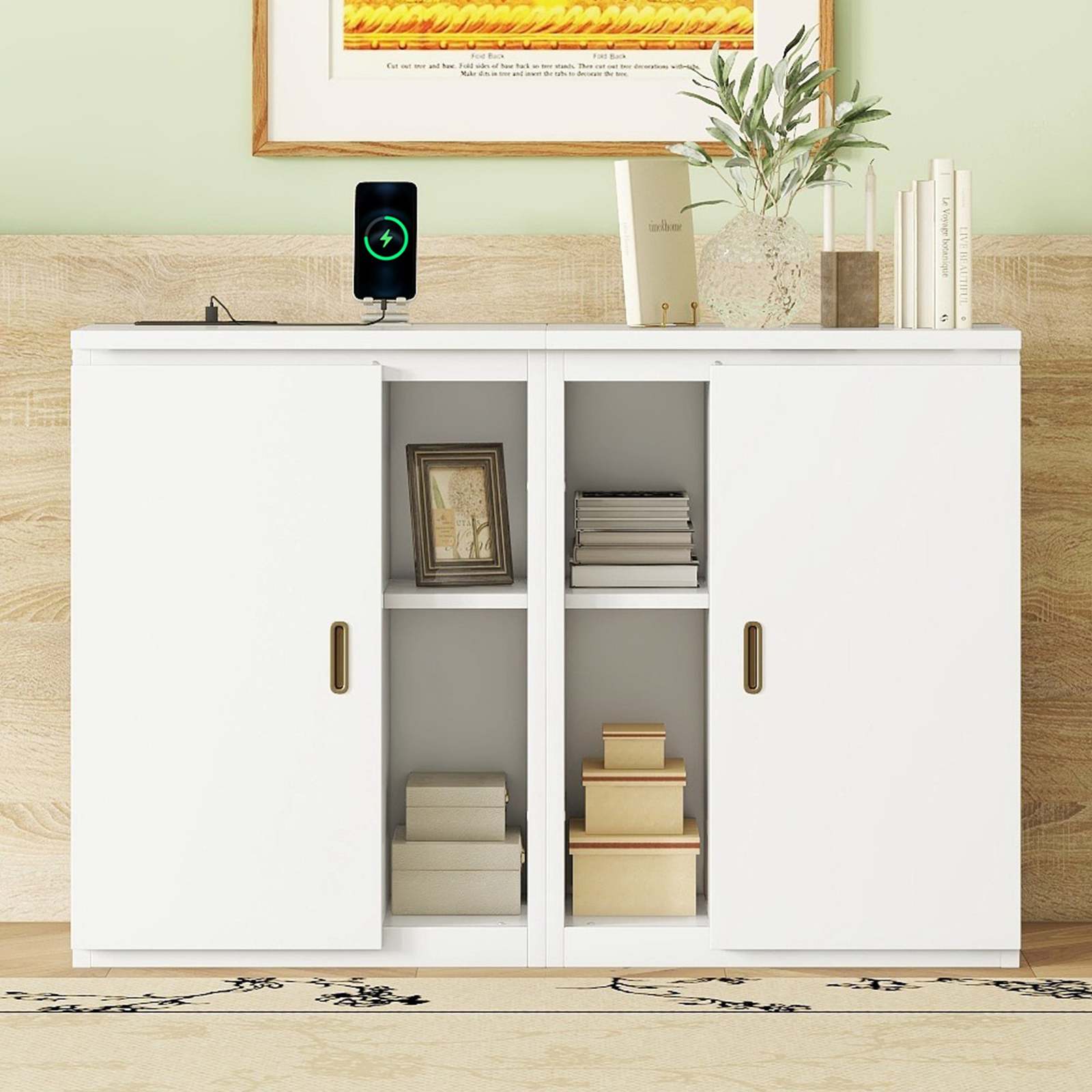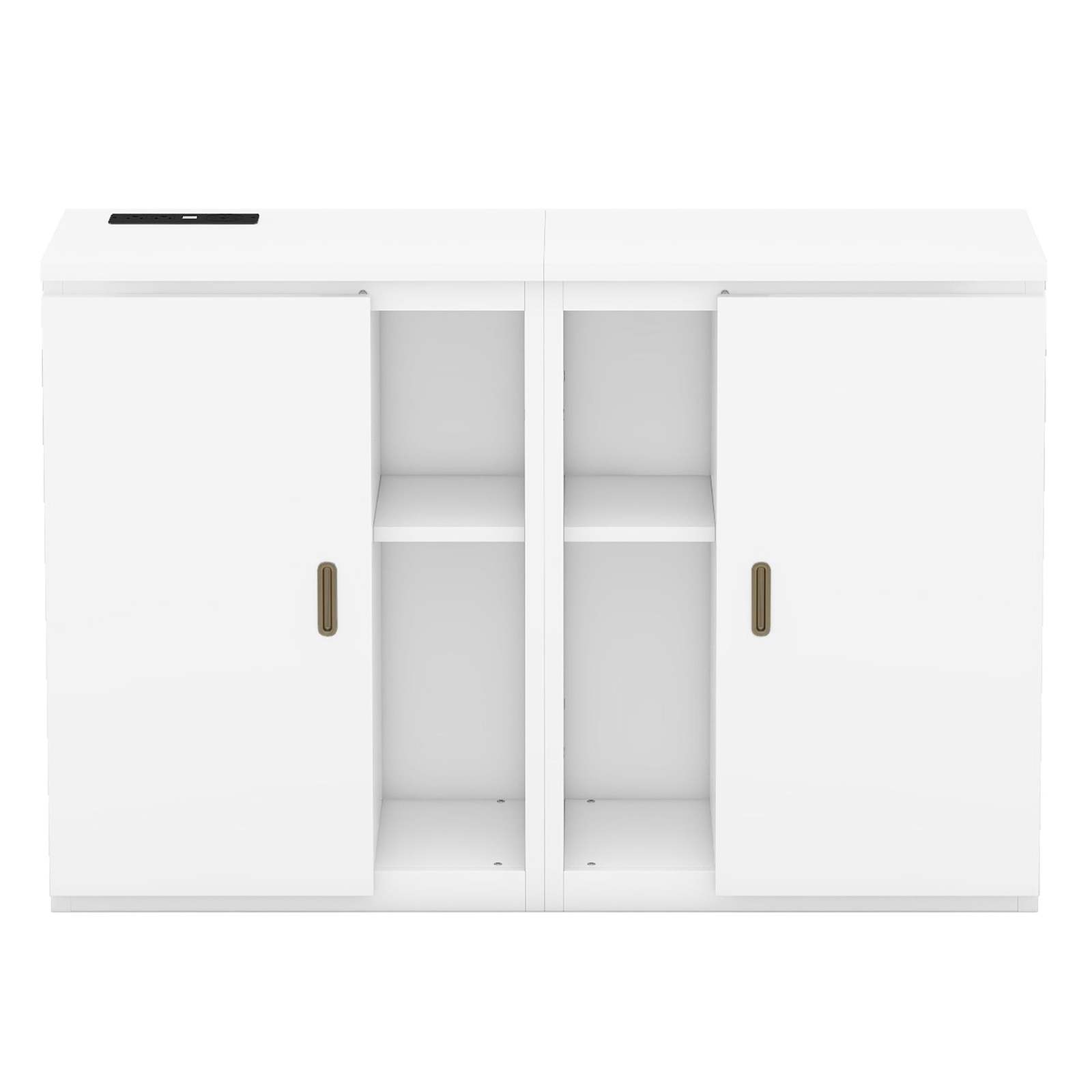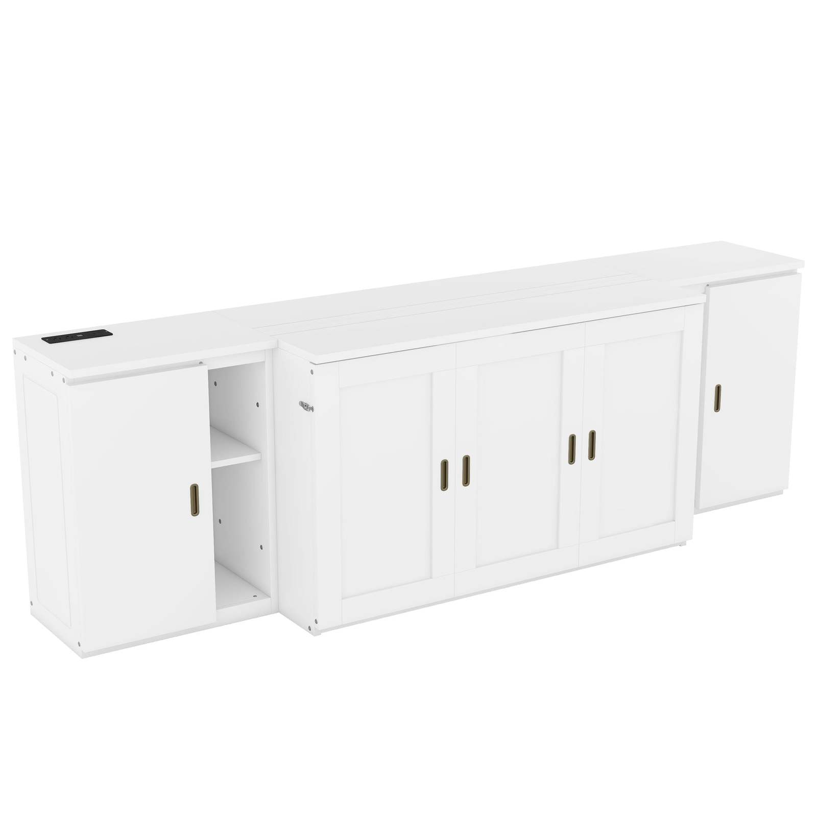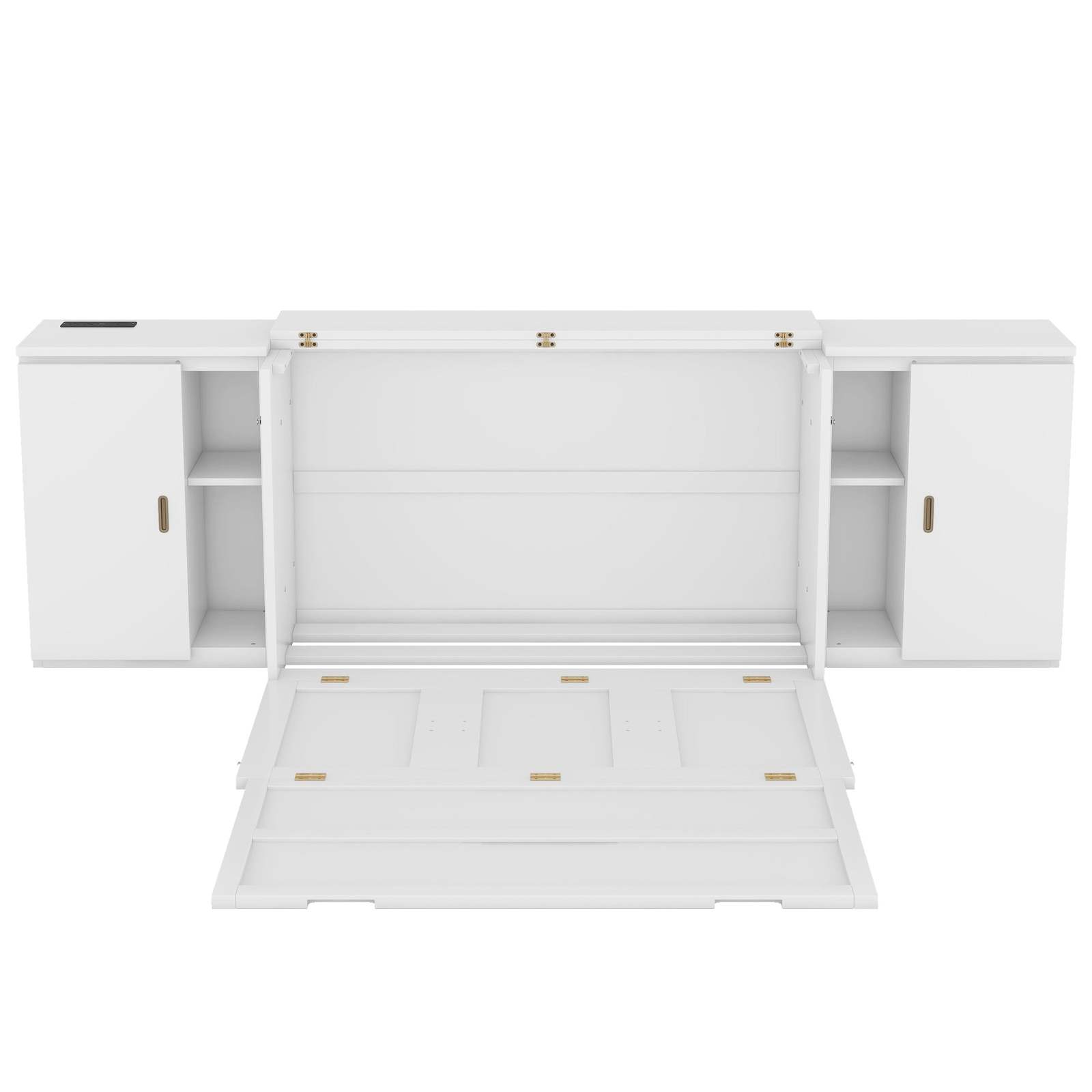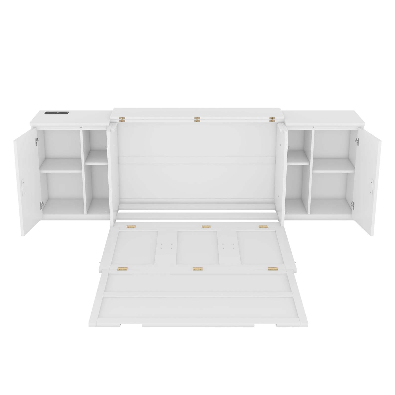 - White Full Size Murphy Bed: Shelves, Cabinets & USB Ports