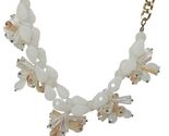 White & Gold Chunky Beaded Floral Necklace With Adjustable Chain Womens Jewelry