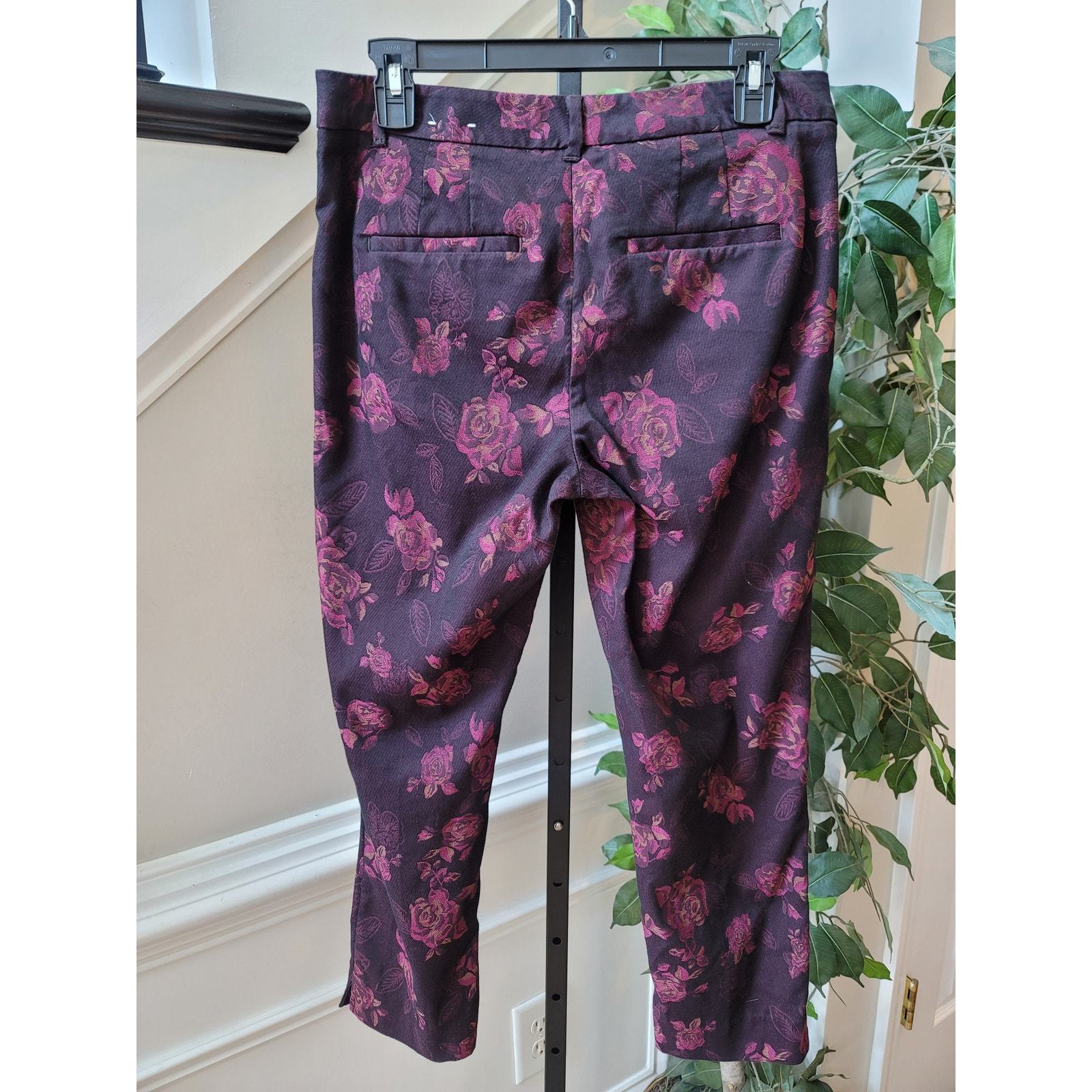 White House Black Market Pants Women's 8 Burgundy Floral Slim Ankle Stretch