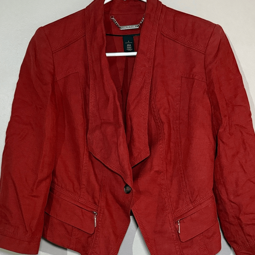 - White House Black Market Rust Linen Long Sleeve Cropped Jacket 2