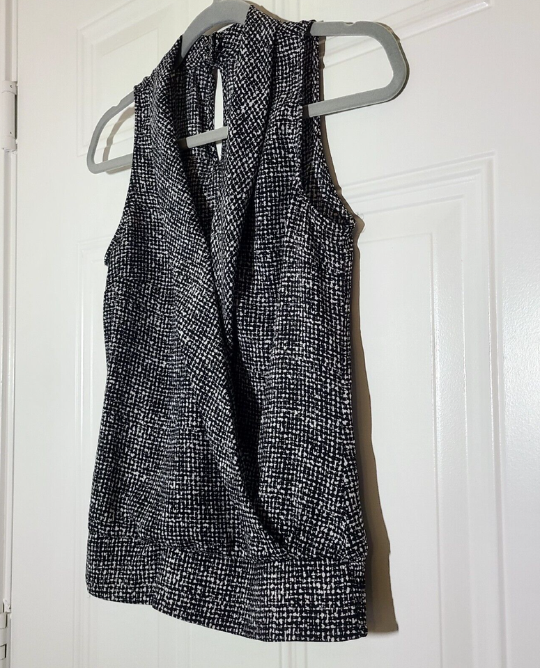 White House Black Market Top Shell Womens Size XS Sleeveless Black White Print