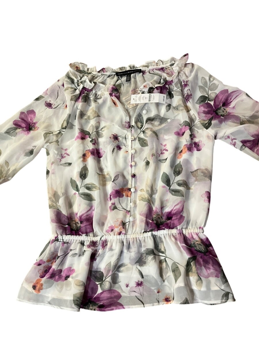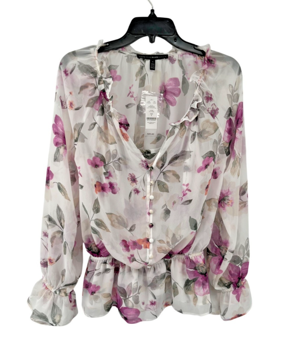 White House Black Market Women?s Floral Ruffle Blouse ? Size 6 ? New with Tags