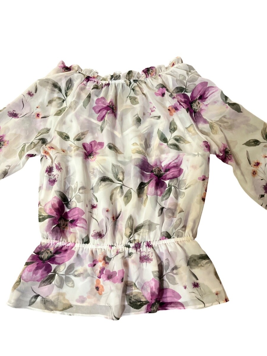 - White House Black Market Womens 6 Floral Blouse Ecru Violet Ruffle + Tank NWT