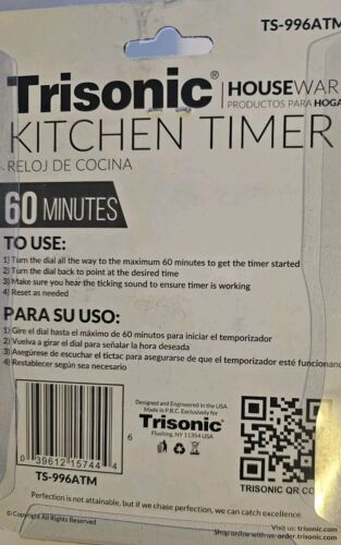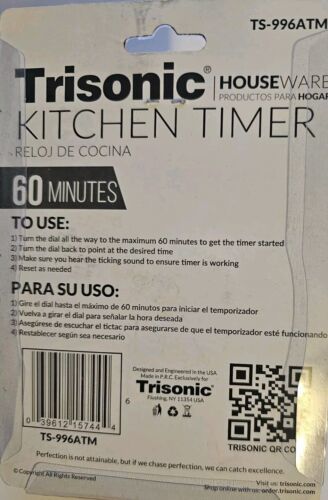 The White Kitchen/Salon Timer is a 60-minute mechanical timer designed for versatile use in kitchens and salons. This timer features a manual operation with a countdown function, making it ideal for various timing tasks such as cooking, baking, beauty treatments, or other salon services. The compact timer is 3 inches in height, constructed from durable plastic material in a white color scheme, and is manufactured in China. Its simple yet reliable design ensures accurate timing for different activities without the need for batteries or complicated settings.