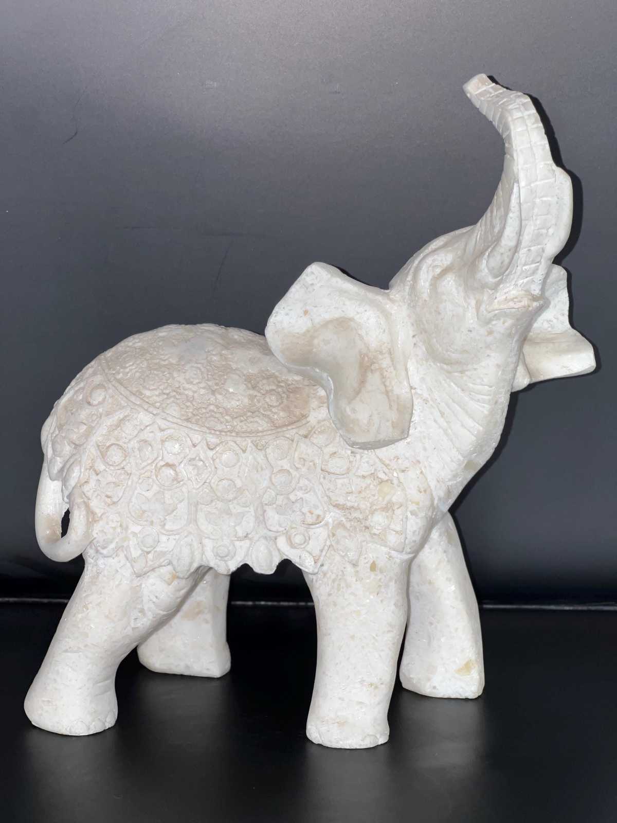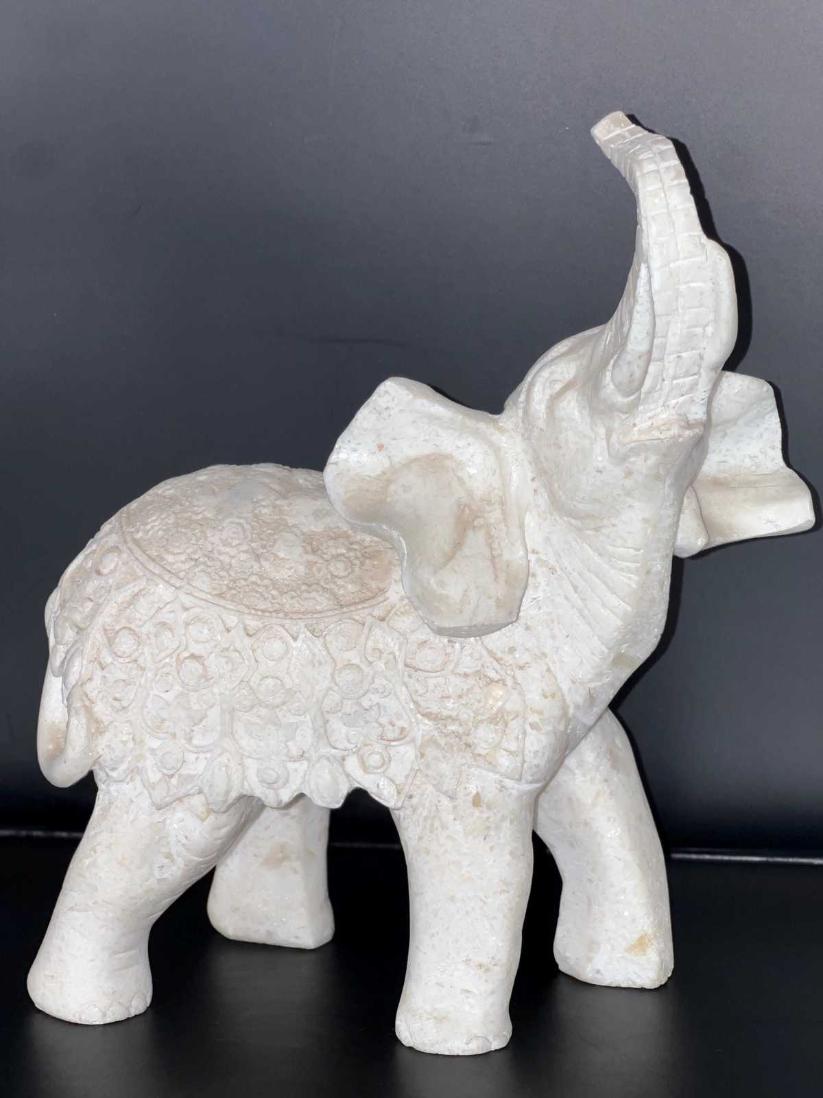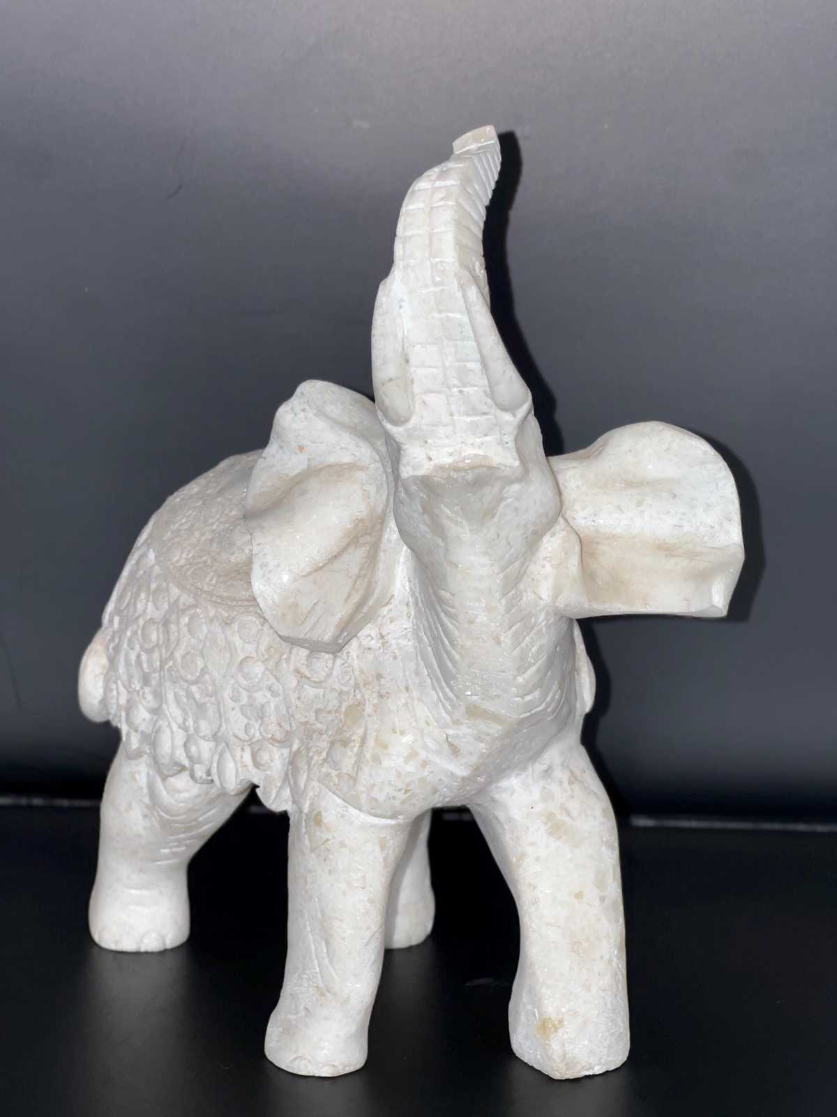 - White Marble Carved bust of Indian Elephant, Handmade marble Elephant figurine,
