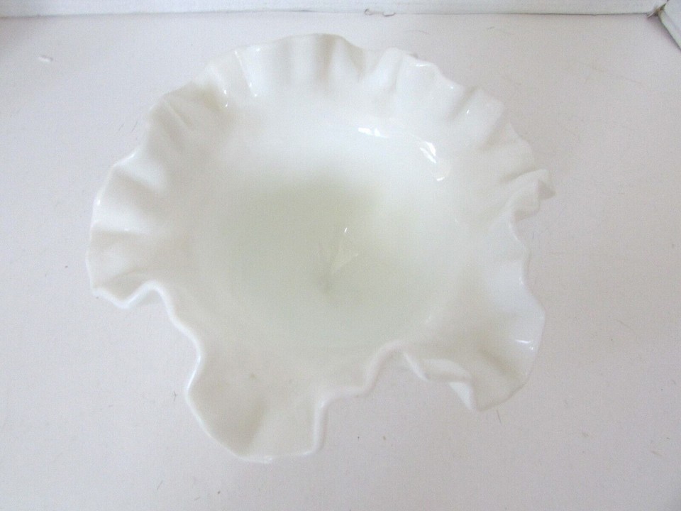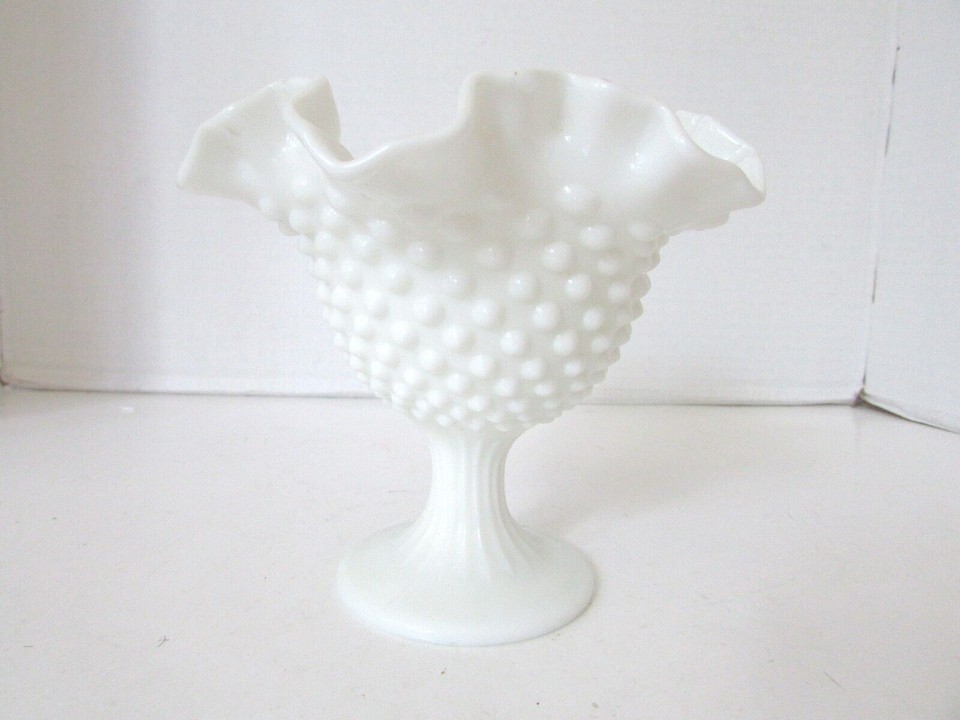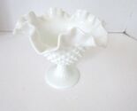 - WHITE MILK GLASS PEDESTAL COMPOTE CRIMPED AND RUFFLED RIM 5-5/8" H HOBNAIL LotA