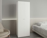 - White Modern 2-Door Closet Armoire - Hanging Rod & Storage Shelf