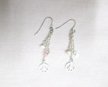- WHITE PEACE SIGN - FLOWER SEQUIN & SEED BEAD 3 CHAIN DANGLE PAIR OF EARRINGS
