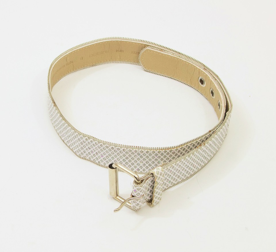 Good condition white belt with rhinestones. Silver colored buckle and holes. There are some glue stains along the edges of the belt. Not readily visible. Please check out the pictures