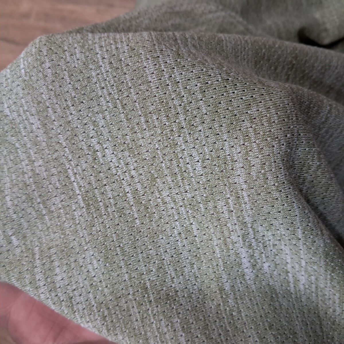 Lightweight tight night mesh. Heathered dusky green. zippered pocket on side.