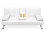 - White Sofa Faux Leather Convertible With 2 Cup Holders