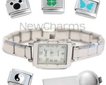 - White Squared Italian Charm Watch and Bracelet and Tool & Stainless Steel Charms