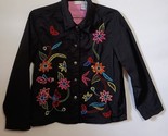 White Stag Ladies Jacket/Top Size M (8-10) Rich Black w/Floral Embroidery Boho